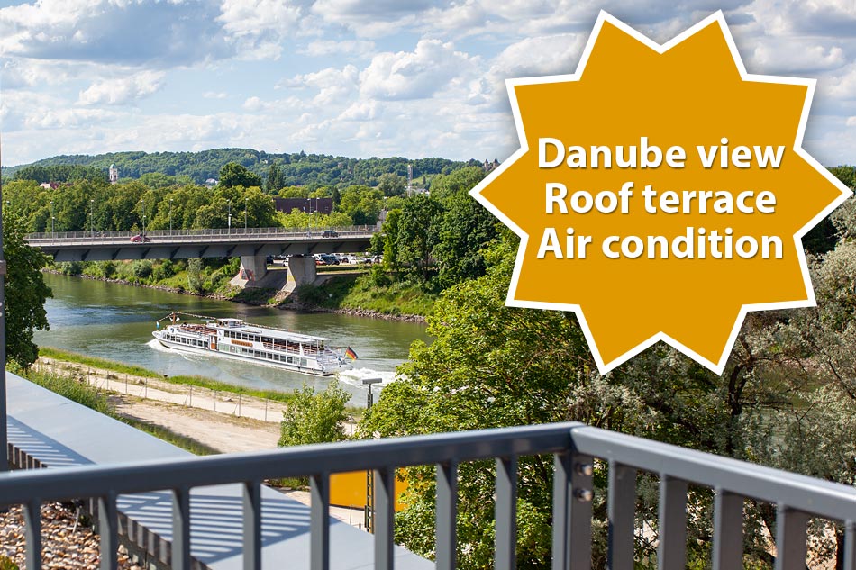 The Marina Apartments primarily have 1- and 2-room apartments. Large 3-room apartments with a glorious view round off the portfolio. All apartments have patios and/or balconies. Above all the direct view of the Danube and – from the upper floors – of Regensburg Old Town make the Marina Apartments very special. Basement sections and underground parking spaces can also be rented in addition.